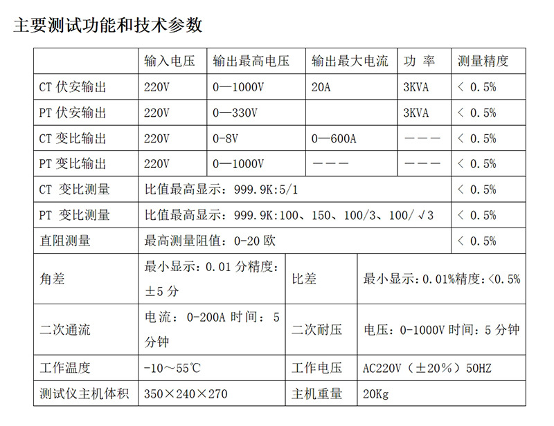 4、功能齊全:可檢測CT/PT的伏安特性、變比、極性、5%和10%誤差曲線、CT一次通流和CT退磁等項目,輕松實現一機多用。