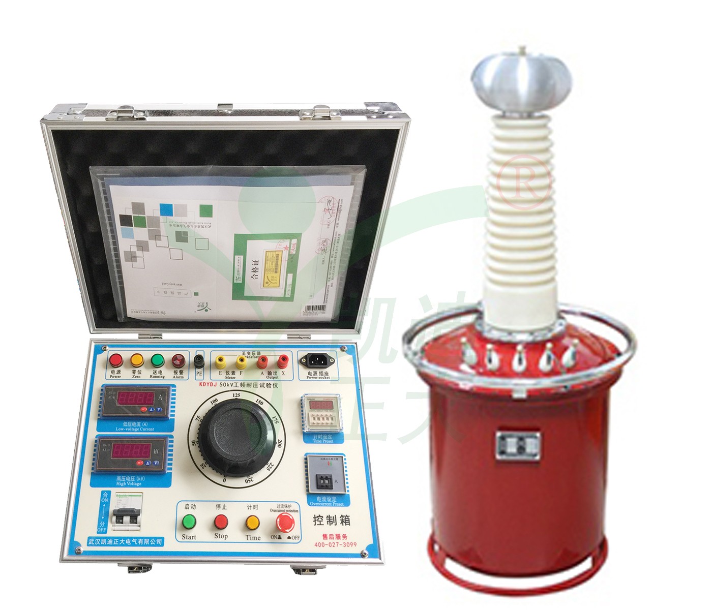 KDYDQ工頻耐壓試驗裝置(氣體式)是鑒定電力設備絕緣強度的最嚴格、最有效和最直接的方法。它能檢查出那些危險性較大的集中缺陷,對判斷電力設備能否繼續參加運行具有決定性作用,是保證設備絕緣水平、避免發生絕緣事故的重要選擇。
