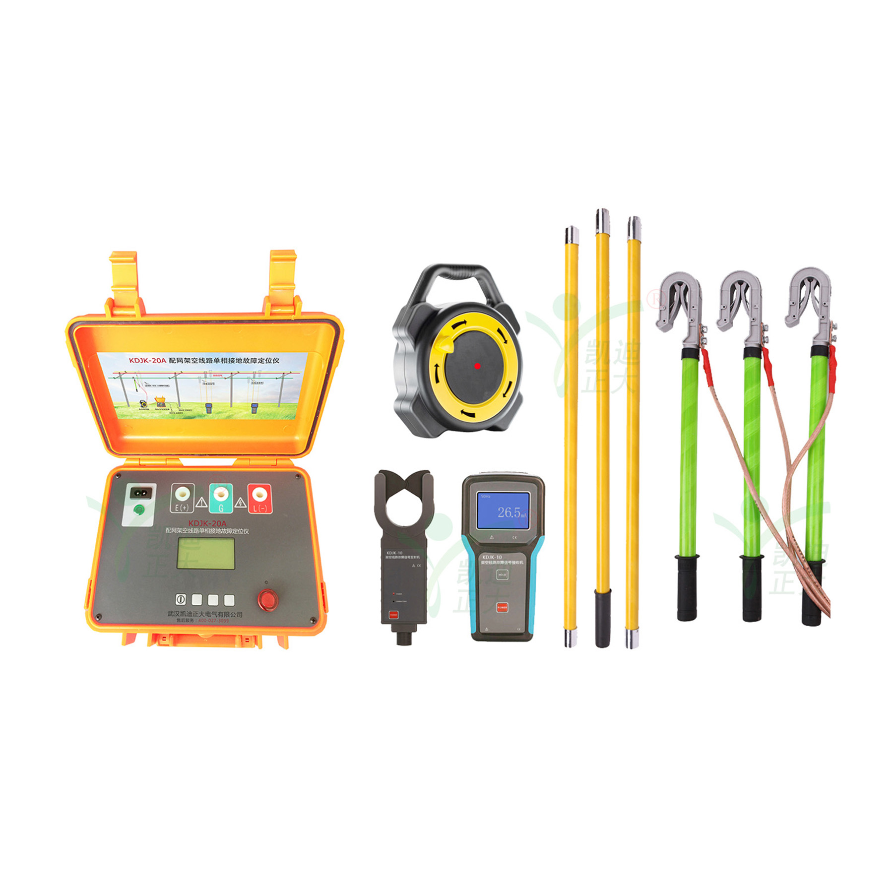 凱迪正大KDJK-20A架空線路接地故障查找儀可以在極短的時間內找出接地故障點。儀器內置電池供電,一次可以工作5小時以上,重量小于8公斤,實用方便,從而很好的解決了上述問題,并使停電查線更為準確、快捷、方便、輕松,具有傳統方法所無可比似的優越性。
