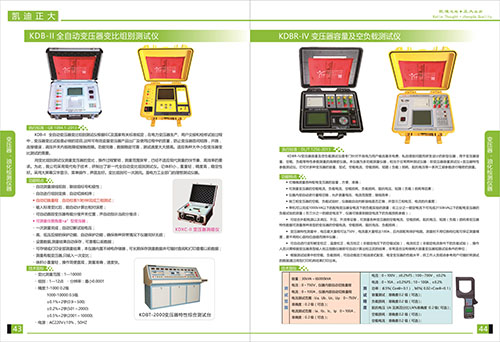 KDB-II 自動變壓器變比組別測試儀具有自動測量接線組別,聯結組標號和極性,自動進行組別變換,自動校表10秒鐘完成三相測試;輸入標準變比后,能自動計算出相對誤差;可自動跟蹤變壓器有載分接開關位置,并自動指示當前分接點,可測量任意角度“Z”型變壓器,一次測量完成,自動切斷試驗電壓;高,低壓反接的保護功能,自動保護功能,確保各種異常情況下儀器完好無損;設置數據,測量結果自動保存,可查看以前數據;可存儲或打印全部測量結果,本儀器內置不掉電存儲器,可長期保存測量數據并可隨時查閱和打印查看以前數據;測量有載變壓器,只輸入一次變比;體積小重量輕,操作簡單,測量準確,速度快。變比測量范圍:1-10000,組別:1-12點 分辨率:最小0.0001 精度:1-1000 0.2級