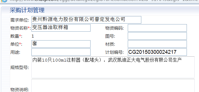 武漢凱迪正大電氣有限公司專業(yè)生產(chǎn)電力試驗(yàn)設(shè)備:KDJJC-80KV絕緣油介電強(qiáng)度測(cè)試儀、KDYDJ工頻耐壓試驗(yàn)裝置、KDZG-II直流高壓發(fā)生器、YDJ油浸式試驗(yàn)變壓器、GTB干式試驗(yàn)變壓器、KDJB微機(jī)繼電保護(hù)測(cè)試儀、KDHG互感器特性綜合測(cè)試儀、KD-216電纜故障測(cè)試儀、KDGK斷路器動(dòng)作特性測(cè)試儀、絕緣及接地電阻測(cè)試儀、六氟化硫氣體檢測(cè)儀等。其中變壓器檢測(cè)儀多次吸引中國(guó)華電集團(tuán)貴州黔源電力股份公司的招標(biāo)采購(gòu),此次招標(biāo)采購(gòu)指定武漢凱迪正大電氣股份有限公司生產(chǎn)的KDZD變壓器油取樣箱注射器10只100ml裝一套、KDZD變壓器油取樣箱廣口瓶10只250ml裝一套等電力試驗(yàn)設(shè)備配件材料。