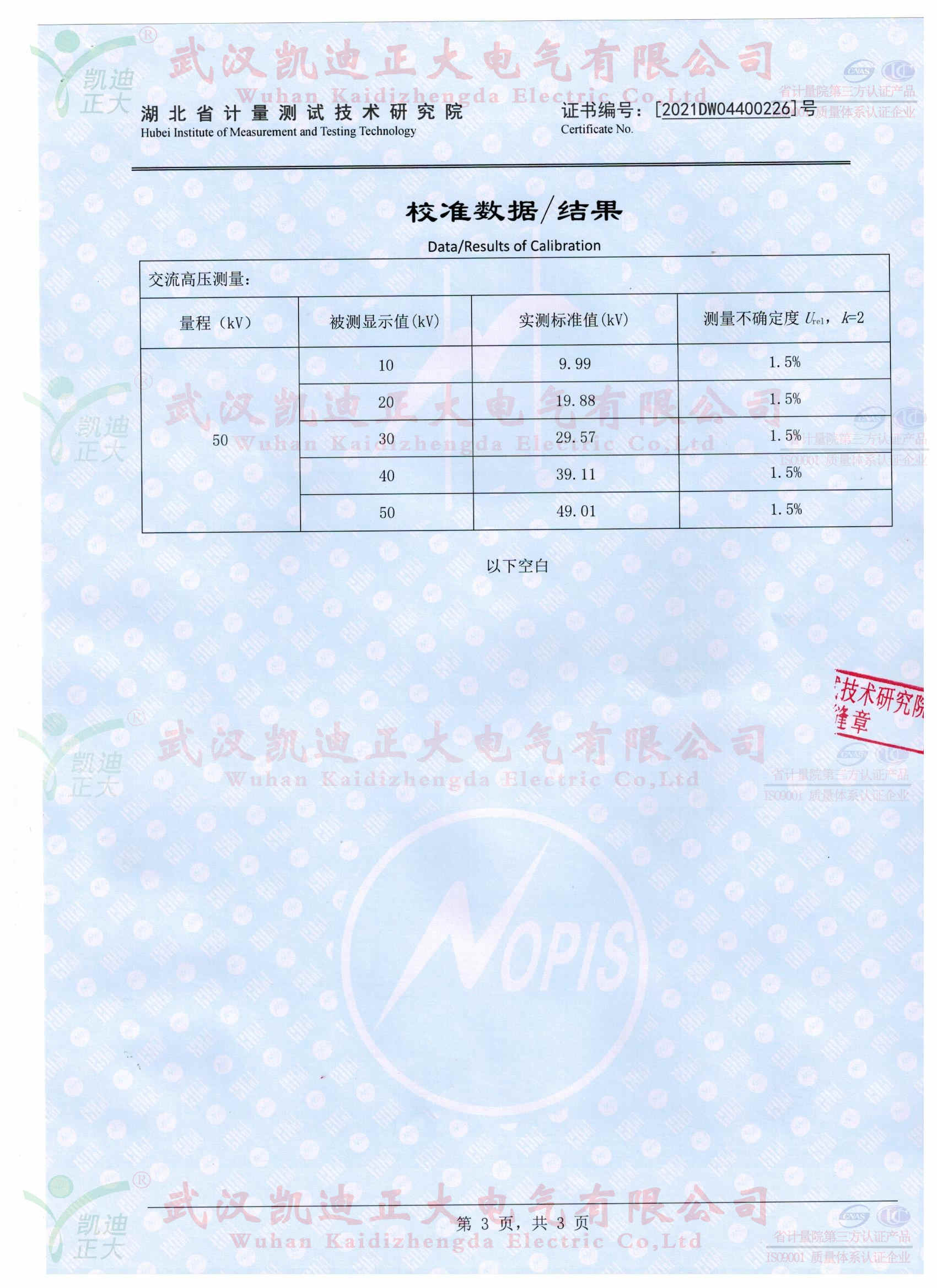 KDJS-8自動絕緣靴手套耐壓泄漏電流測試儀獲得湖北省計量測試技術研究院校準證書,證書編號《2021DW04400226》,采用FRC-150M數字高壓表檢定電壓合格、產品各項指標均符合國標的要求。按《電力安全工器具預防性試驗規程》要求對絕緣鞋、絕緣手套等安全工器具進行智能化絕緣耐壓試驗,絕緣靴及絕緣手套耐試驗周期為半年,試驗過程中不允許擊穿,同時絕緣靴絕緣絕緣手套泄漏電流不大于限定值。產品適用于大多數與電力相關行業。